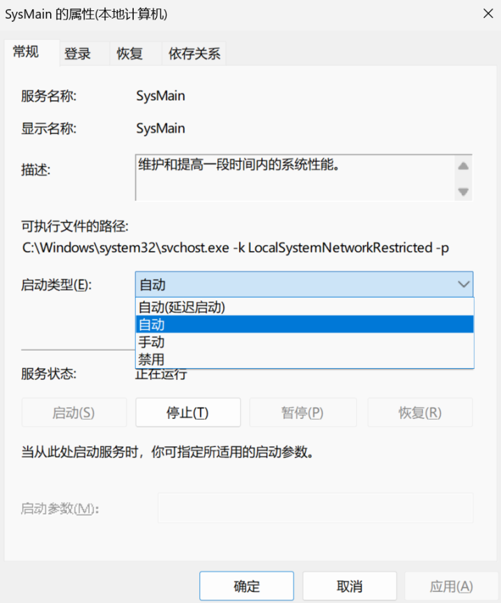 方法:通过快捷键Win+R输入services.msc回车,在列表中找到SysMain(旧版系统叫Superfetch),双击打开。将启动类型改为禁用,并点击停止服务。