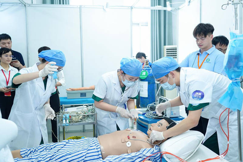 本次竞赛以“精医术 砺初心 守生命 担青春”为主题,共有来自区内5所高等医学院校的12支参赛队参加角逐。竞赛设初赛与决赛两个阶段,赛程紧凑、内容丰富。初赛为站点竞赛,决赛为赛道竞赛,全面考察选手的基本技能、临床思维、人文关怀及团队协作能力。赛事特邀中山大学附属第一医院胡文杰教授担任总裁判长,并由56位来自各参赛院校的推荐专家共同组成裁判团队,确保评审公正权威。