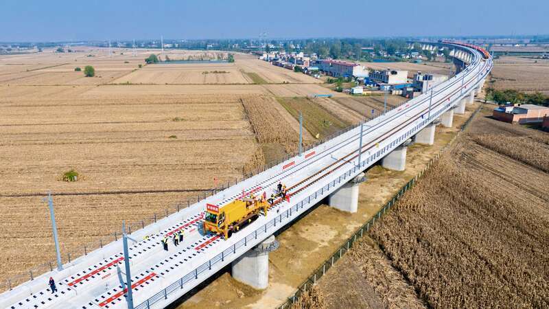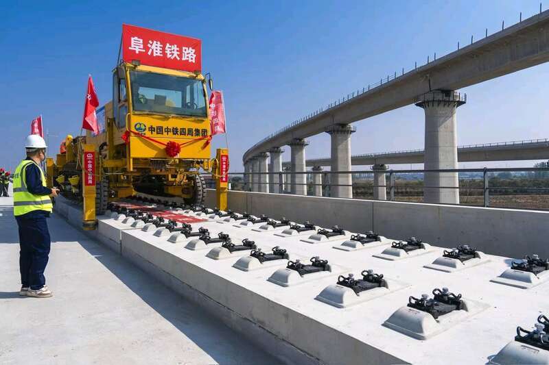 该铁路全线铺轨307.91公里,铺设道岔66组。此次铺轨采用自主研发的WZ500型铺轨机组及公铁两用牵引车,以双堆集站外接轨点为起点,向阜阳方向开始铺轨。阜淮铁路系安徽省“十四五”重点工程建设项目,是皖北地区城际铁路网的重要组成部分,建成后将极大地改善区域交通条件,加强皖北地区与长三角核心区域的联系。